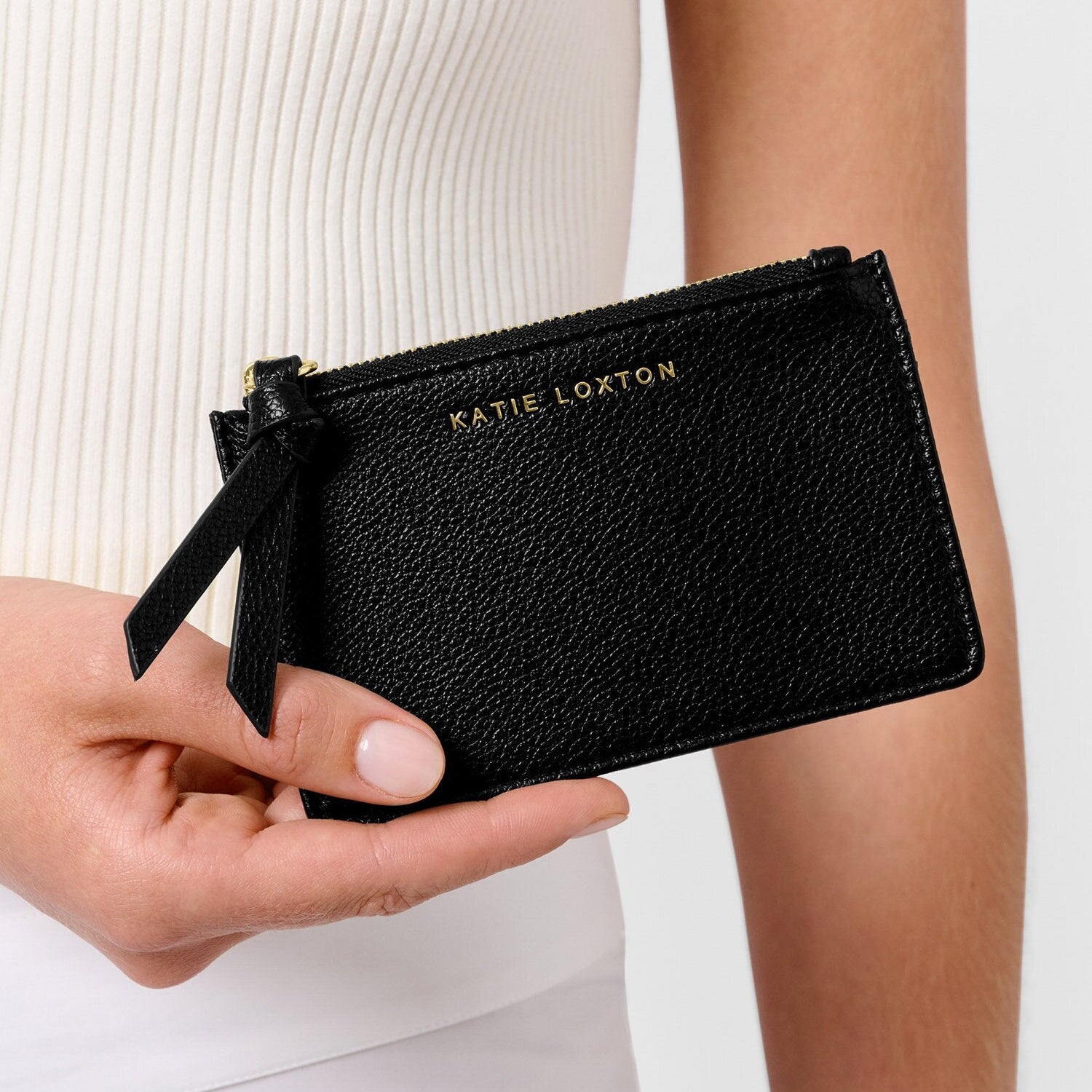 Crafted from soft vegan leather and finished with our signature gold-tone hardware, our small yet mighty Coin & Card Holder in Black slips easily into your handbag, ready to tackle the day. Main zip compartment for coins and two slip pockets for cards and notes.