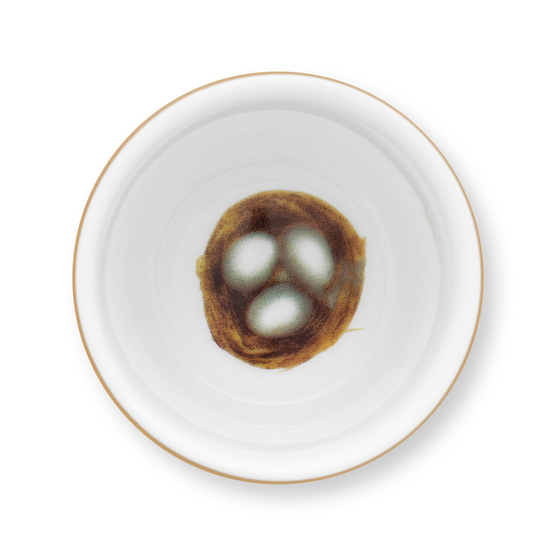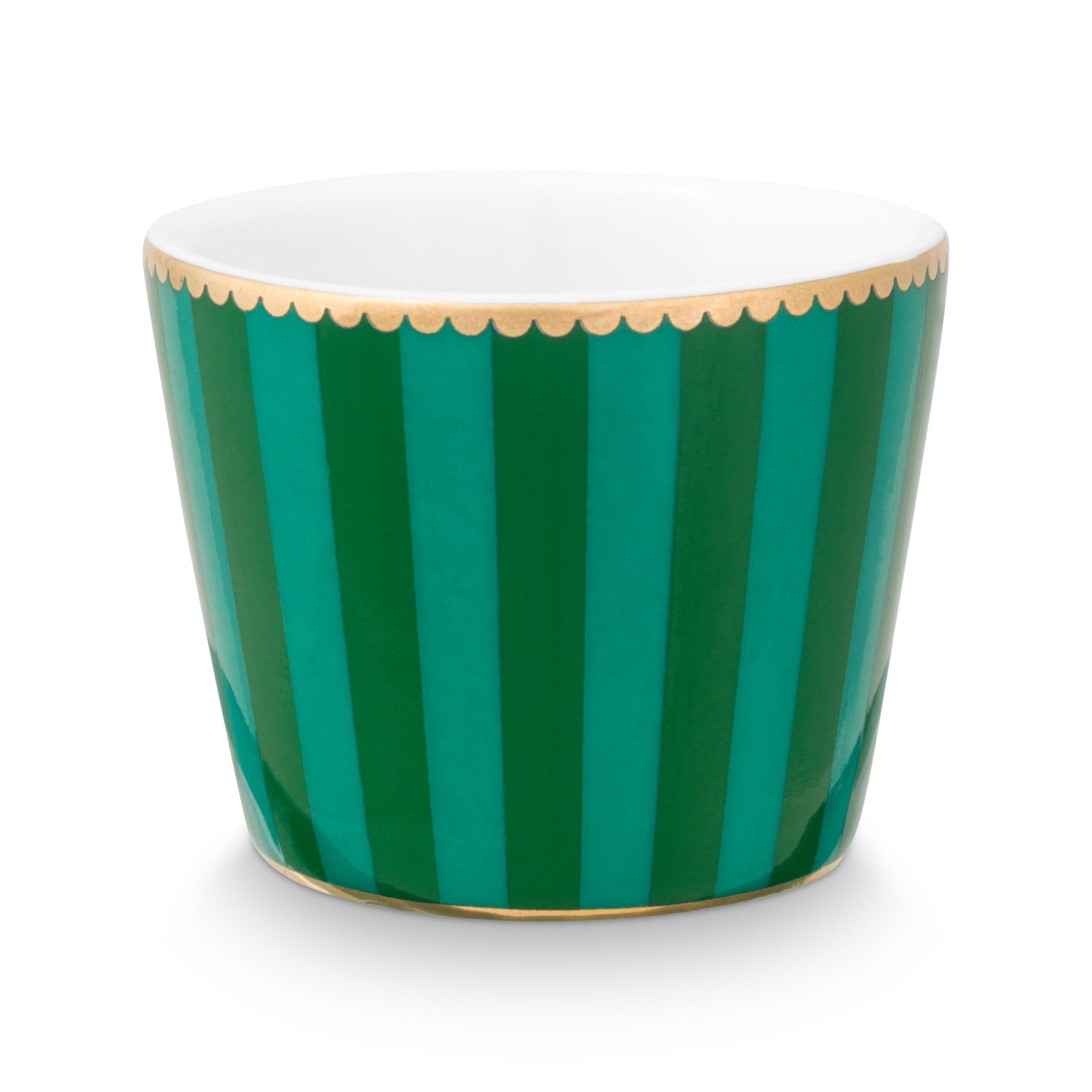 This green striped egg cup is part of Pip's all-time favourite Love Birds design. Decorated with a gold edged border. Three little eggs hide in the inside of the egg cup. Combines beautifully with the other porcelain items from this collection.