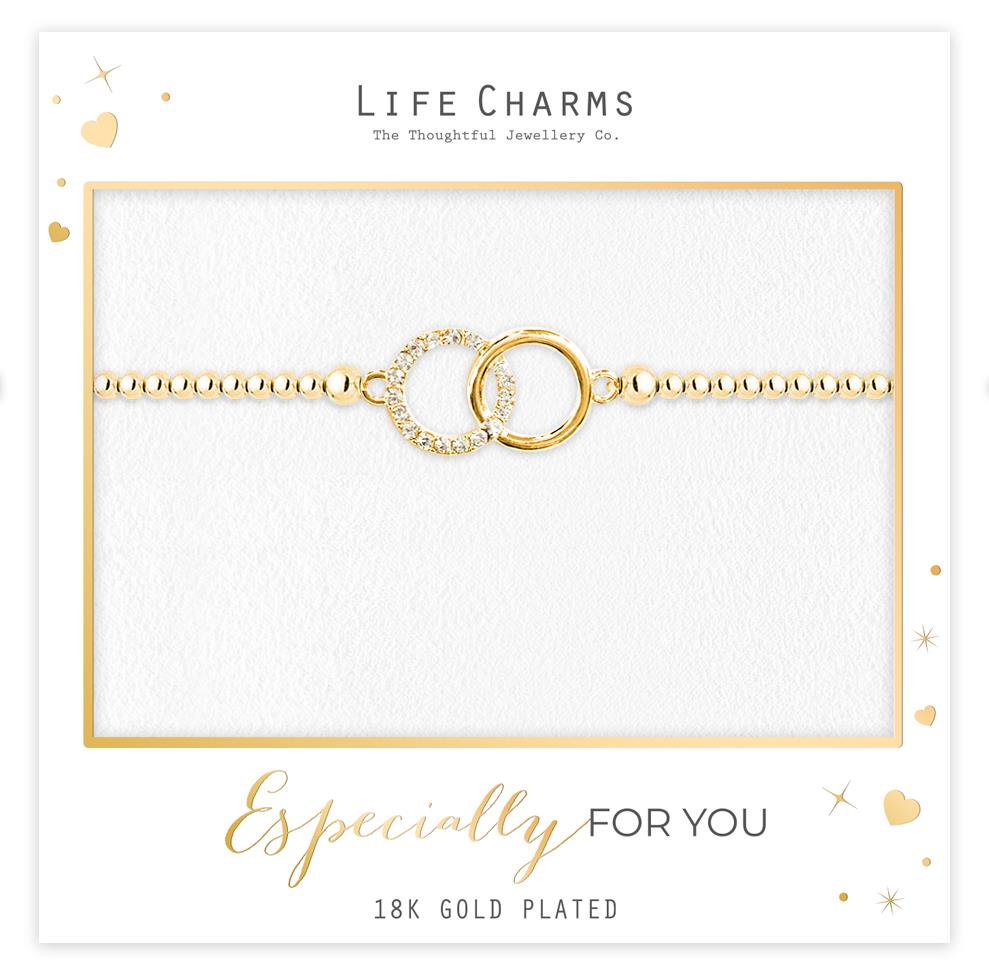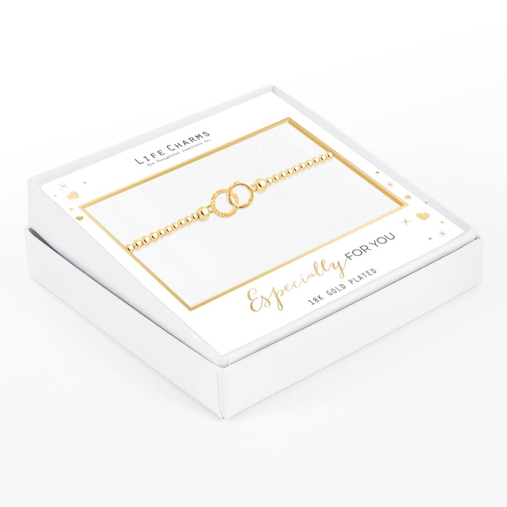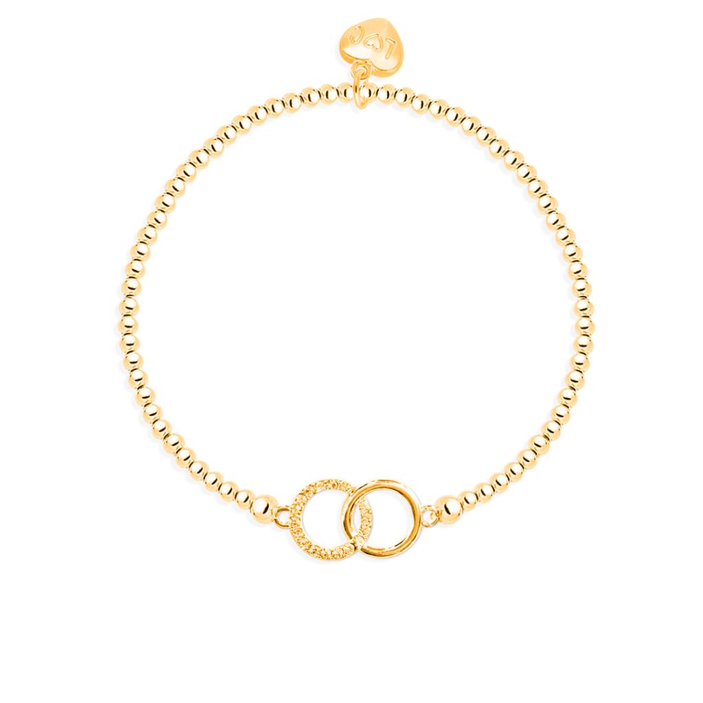 A beautiful range of bracelets and necklaces that cater for any gift giving occasion. This popular collection has been redesigned and represented in new stunning packaging. Beautiful beaded bracelet with double circle charm with cz stone crafted in gold with attention to detail and aesthetic appeal. To add to the luxury experience, each piece of jewellery includes a complimentary gift box.