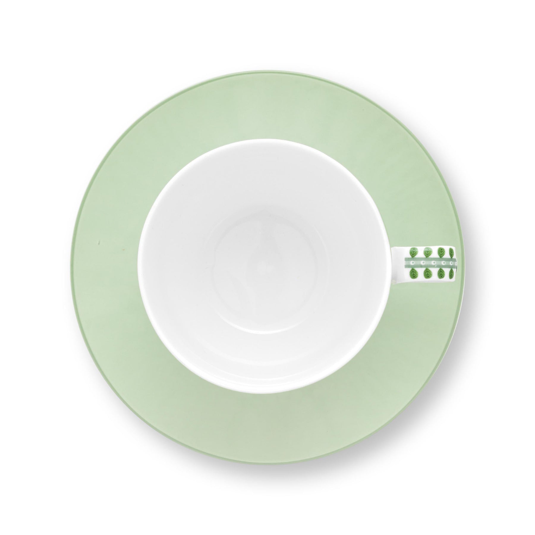 This cappuccino cup & saucer is part of our Lily & Lotus collection. The cup is decorated with small graphic flowers. The flowers and graceful ferns are placed symmetrically, giving this cup a modern twist. The plate has a beautiful purple colour. Lily & Lotus is the first tableware in Pip Studio's collection that is dishwasher, microwave and oven safe.