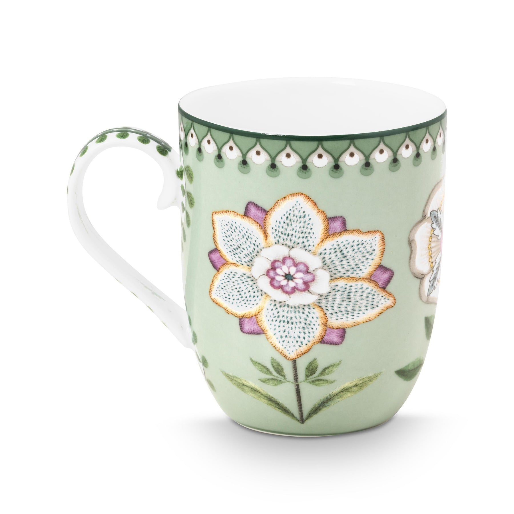 This small mug is part of our Lily & Lotus collection. The mug is decorated with an imaginative lily in pastel shades. The flower and graceful ferns are placed symmetrically, giving this cup a modern twist. Lily & Lotus is the first tableware in Pip Studio's collection that is dishwasher, microwave and oven safe.