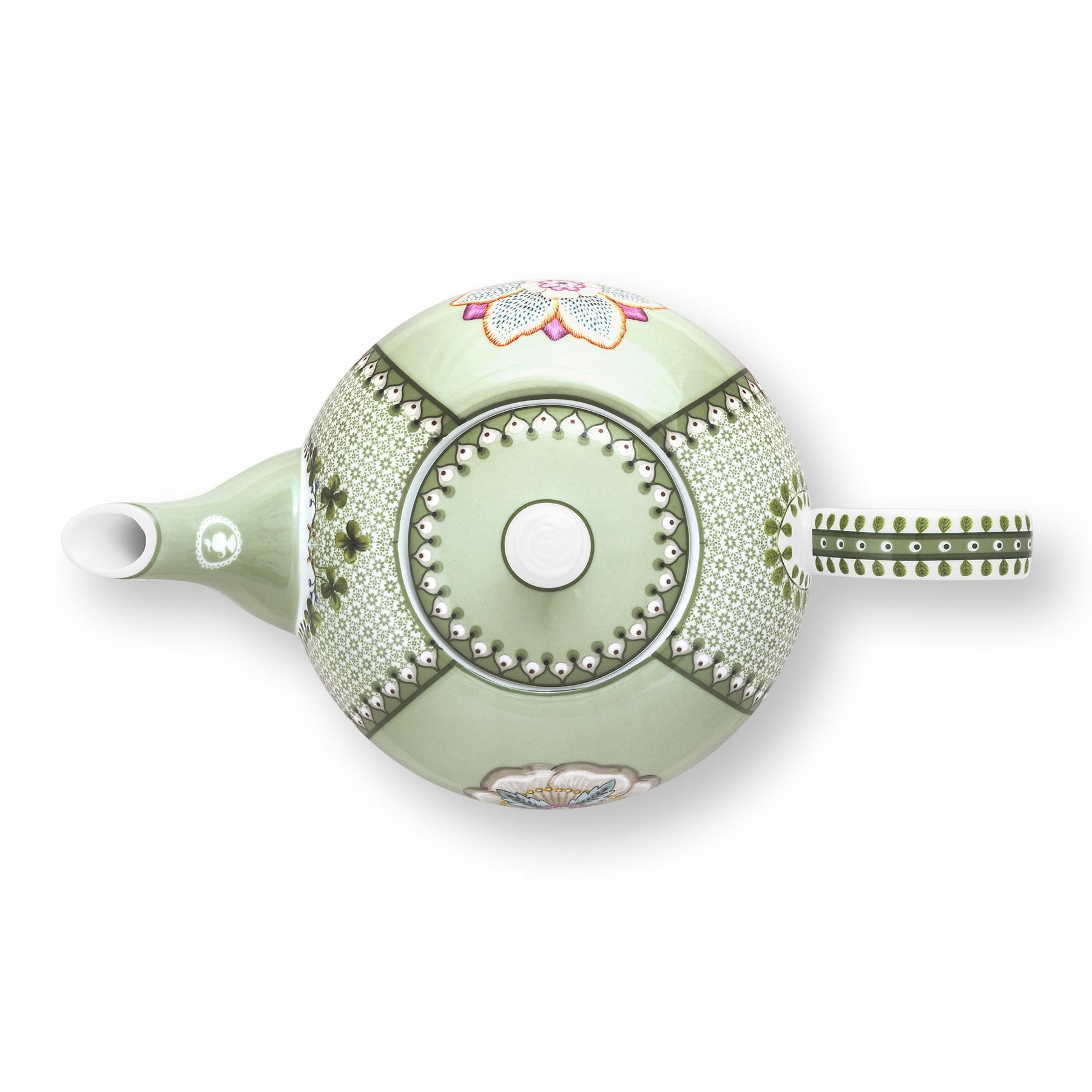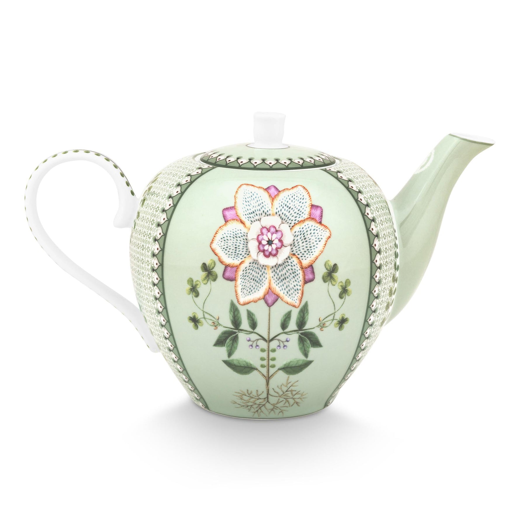 This teapot is part of our Lily & Lotus collection. The teapot is decorated with a large fanciful lily, lotus leaves and dandelions in pastel shades. The flowers and graceful ferns are placed symmetrically, giving this teapot a modern twist. Lily & Lotus is the first tableware in Pip Studio's collection that is dishwasher, microwave and oven safe.