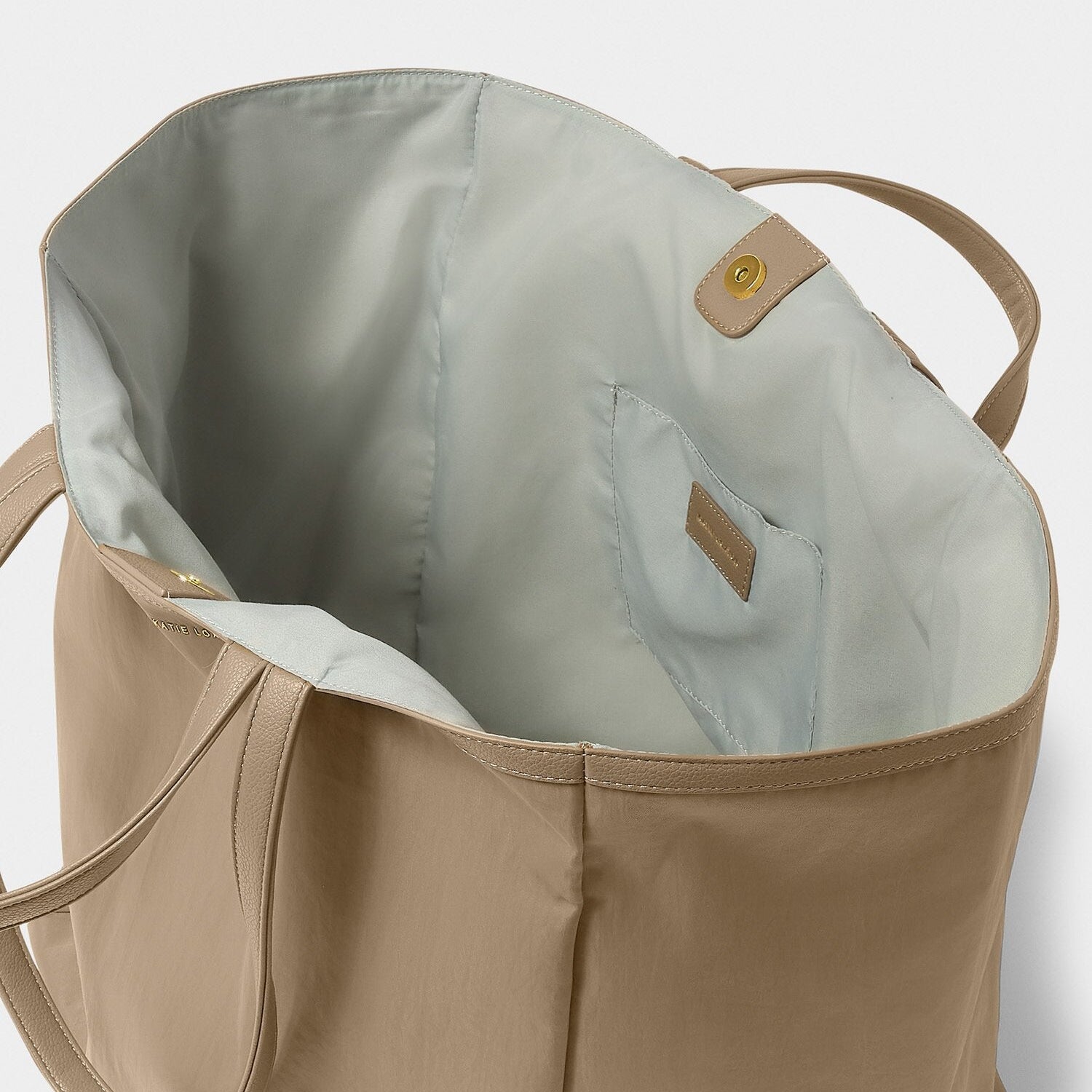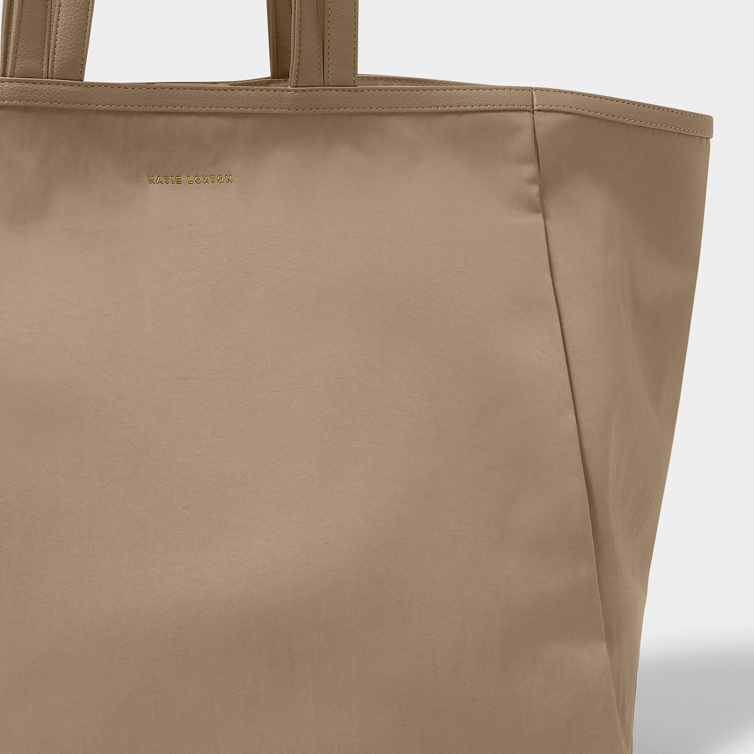 From work trips to weekend adventures, our Nylon-Luxe Oversized Tote Bag in Taupe is your customers' new favourite on-the-go companion. Featuring water-resistant nylon material with smooth vegan leather trims and our signature gold-tone hardware, it offers both style and functionality. This bag includes a top handle and shoulder strap for comfortable carrying, an internal pocket for storing all of their everyday essentials, and a spacious interior that provides plenty of room for every use, whether it's the ultimate gym bag, a hospital bag, or a beach bag.